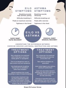 It is important to distinguish EILO (exercise-induced laryngeal obstruction) from EIB (exercise induced bronchoconstriction). 8-10% of all adolescents may have EILO as at peak exercise they get wheeze. It is also possible to have inducible laryngeal obstruction not linked to exercise. An odour e.g. when exposed to perfume on the tube. Direct provocation can clinch the diagnosis (available in the Occupational Lung Disease department at the Brompton).